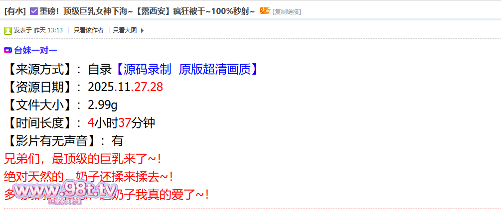 【资源名称】: 重磅!顶级巨乳女神下海~【露西安】疯狂被干~100%秒射