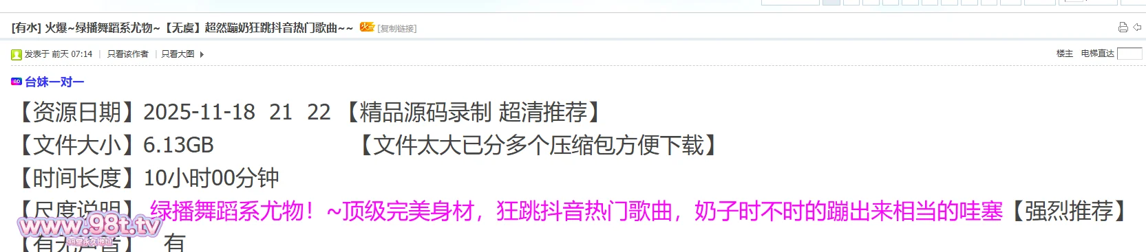 【资源名称】:火爆~绿播舞蹈系尤物~【无虞】超然蹦奶狂跳抖音热门歌曲