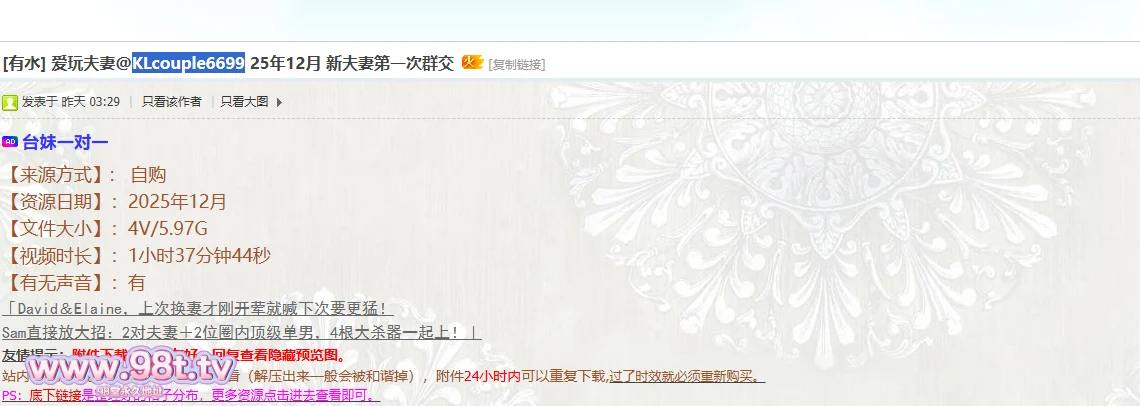 【资源名称】:爱玩夫妻@KLcouple6699 25年12月 新夫妻第一次群交