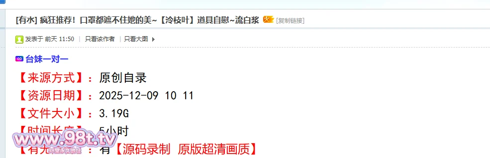 【资源名称】: 疯狂推荐!口罩都遮不住她的美~【泠枝叶】道具自慰~流白浆
